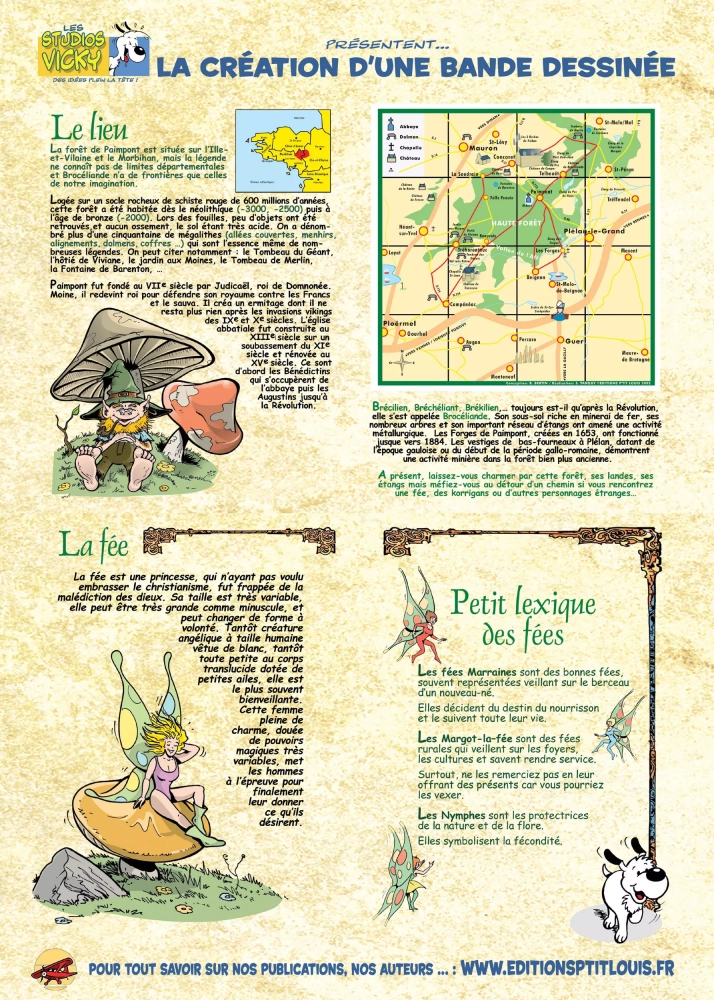 L'exposition permet de découvrir Brocéliande et son histoire, ses légendes tout en expliquant les différentes étapes et astuces pour réaliser un projet ludique et passionnant : concevoir un scénario et son livre illustré.